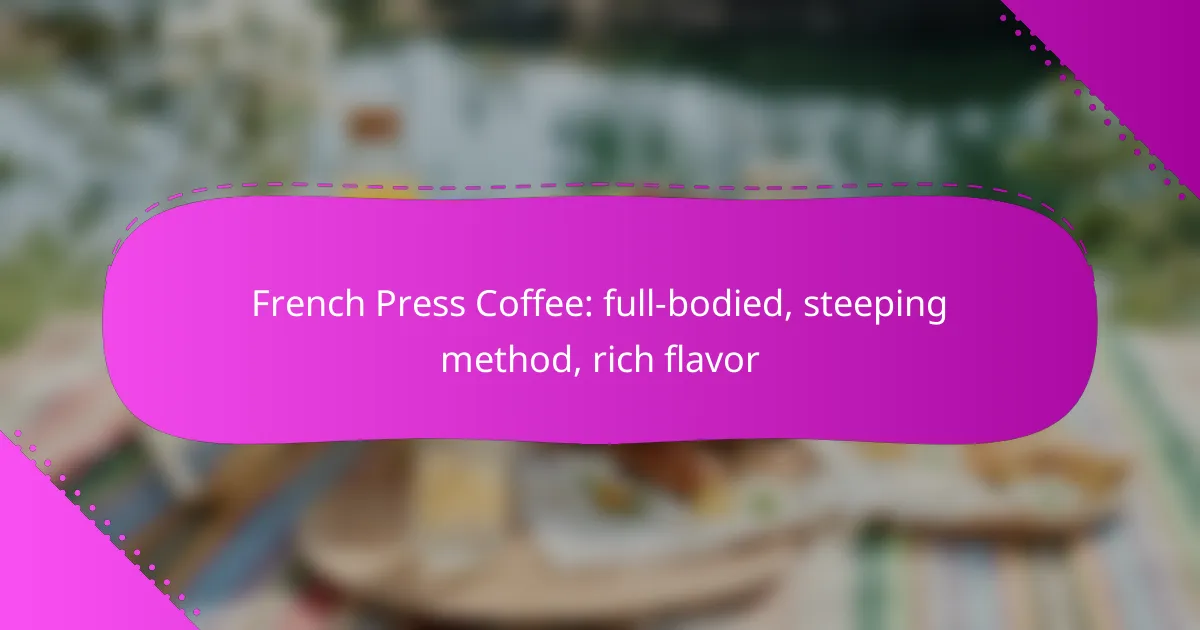 French Press coffee offers a distinct brewing experience that emphasizes full-bodied flavor and rich aroma, setting it apart from methods like drip or espresso. This steeping technique allows coffee grounds to remain in contact with water longer, extracting more oils and flavors.